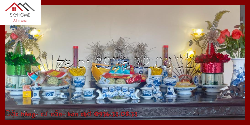 - Bát hương đặt ở trung tâm, đầy đủ lễ, gọn gàng và dễ thao tác.