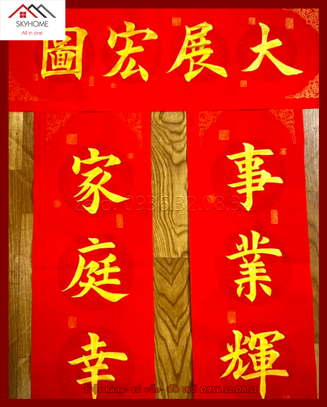 Câu đối chữ Sự nghiệp huy hoàn- Gia đình hạnh phúc