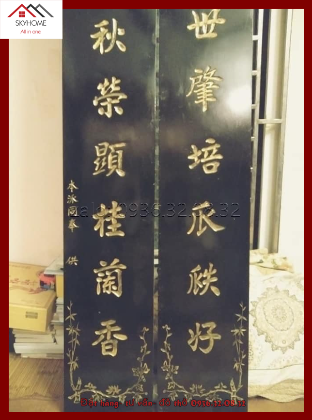 Câu đối thờ Bắc địa tố căn nguyên- Đông A truyền hệ phả thể hiện ý nghĩa tổng thể, nhấn mạnh cội nguồn và truyền thống gia tộc, còn chữ bé bổ sung chi tiết về dòng họ và các thế hệ.