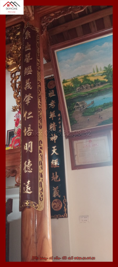 Câu đối thờ Hệ xuất trâm anh nghĩa- Lễ điện tần tảo túc có thể hiểu là: trâm anh xuất thân, đức hạnh lan tỏa, nghĩa rộng cho muôn người, nuôi dưỡng đạo đức lâu dài / ở điện lễ, thường xuyên dọn dẹp tươm tất, văn minh và yêu thương, kiến tạo đạo hiếu vững bền. Nó nhấn mạnh giá trị nhân đức, hiếu nghĩa và sự chăm sóc, tôn nghiêm trong việc thờ cúng. Vế trái gồm 9 chữ, nhưng ảnh chụp ban đầu bị che nên chưa đầy đủ. Người cung cấp đã chụp lại các chữ bị khuất để nhờ mọi người dịch giúp. Theo thông tin cung cấp, câu 9 chữ này được làm vào đời Bảo Đại, năm Giáp Tuất, tức 1934.