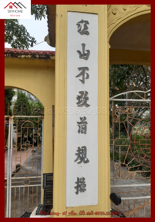 - Vế phải: Miếu vũ trùng tu tân cảnh sắc