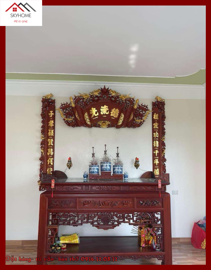 - Bàn thờ gia tiên 3 cấp cho gia đình nhiều thế hệ.