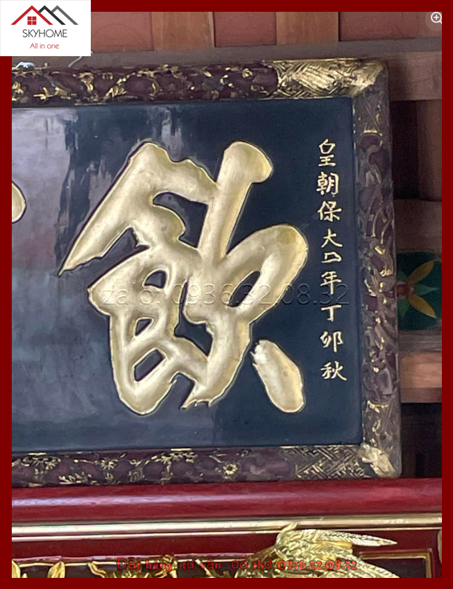 Hoành phi thờ cổ Ấm- Hà- Tư- Nguyên được tạo tác vào mùa thu năm Đinh Mão, triều vua Bảo Đại, tức năm 1927, do một ông cử nhân họ Nguyễn dâng cúng. Dòng chữ kèm theo “Hoàng triều Bảo Đại, năm Đinh Mão, mùa thu” (皇朝保大口年丁卯秋) ghi lại chính xác niên đại và bối cảnh lịch sử, thể hiện tính trang trọng và giá trị văn hóa của hiện vật. Nhiều ý kiến cho rằng việc phục chế cần hết sức cẩn thận để không làm mất đi sự tinh xảo và cổ kính vốn có của bức hoành.