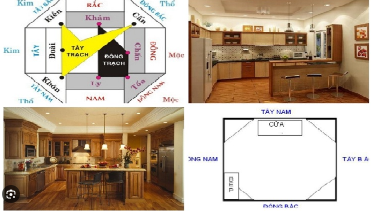 Nguyên tắc phong thủy cho bếp là “tọa hung hướng cát” – đặt bếp ở vị trí xấu nhưng quay về hướng tốt để hóa giải sát khí. Với nhà hướng Đông, bếp tọa Đông hoặc Đông Nam, quay về Tây, Tây Bắc, Tây Nam hoặc Đông Bắc đều hợp lý.