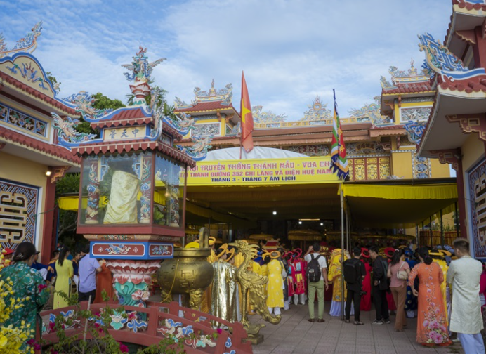 Lễ hội lớn nhất diễn ra tại Đền Huệ Nam vào tháng 3 và tháng 7 âm lịch là lễ hội sông nước với đoàn rước Thánh Mẫu trên sông Hương tạo cảnh tượng hoành tráng, thu hút tín đồ và du khách. Các nghi thức quan trọng gồm lễ giấc sắc Thánh Mẫu và hầu đồng, kết hợp giữa nghi thức cung đình và tín ngưỡng dân gian mang đến không khí và đầy cảm xúc.