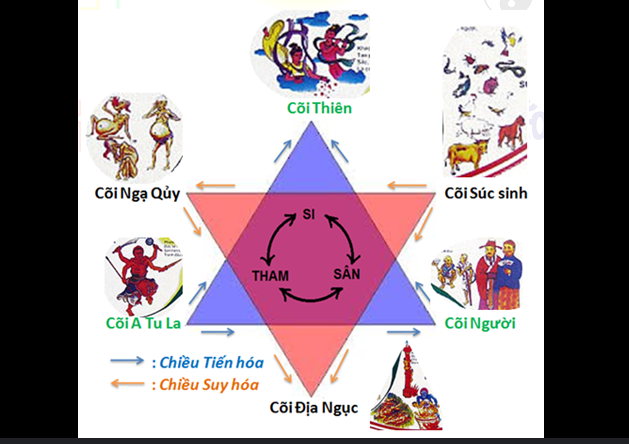 Con người luân hồi sau khi chết là do bị chi phối bởi vô minh, tam độc và vọng tưởng. Vô minh khiến con người không thấu hiểu chân lý, bám chấp vào thân xác, cảm xúc và danh vọng. Tam độc – tham, sân, si – tạo ra nghiệp xấu dẫn đến tái sinh. Vọng tưởng khiến nhận thức sai lầm, chấp ngã, không thoát khỏi luân hồi khiến con người sau khi chết không thể giải thoát, tiếp tục bị nghiệp lực dẫn dắt tái sinh vào các cảnh giới khác nhau.