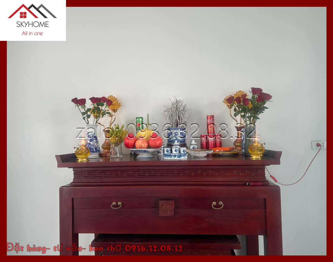 - Cách bày biện: Bát hương đặt ở vị trí trung tâm, không gian xung quanh thoáng, gọn, đủ lễ vật, hài hòa về màu sắc và vật phẩm.