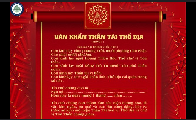 Dưới đây là bài văn khấn cúng Thần Tài mà gia chủ có thể tham khảo: “Con Nam Mô A Di Đà Phật. Con kính lạy chín phương trời mười phương đất chư Phật mười phương và các vị thần linh. Con xin kính lạy Ngài Hoàng Thiên Hậu, Thổ Thành Hoàng và các vị tôn thần cai quản trong vùng. Hôm nay là ngày mùng 10 tháng Giêng năm [Tân Sửu] tín chủ con thành tâm sắp biện hương hoa thực phẩm lễ vật. Xin thần tài gia trì cho gia đạo vạn sự an lành công việc thăng tiến tài lộc dồi dào và sức khỏe bình an. Con xin cúi đầu kính lạy.”